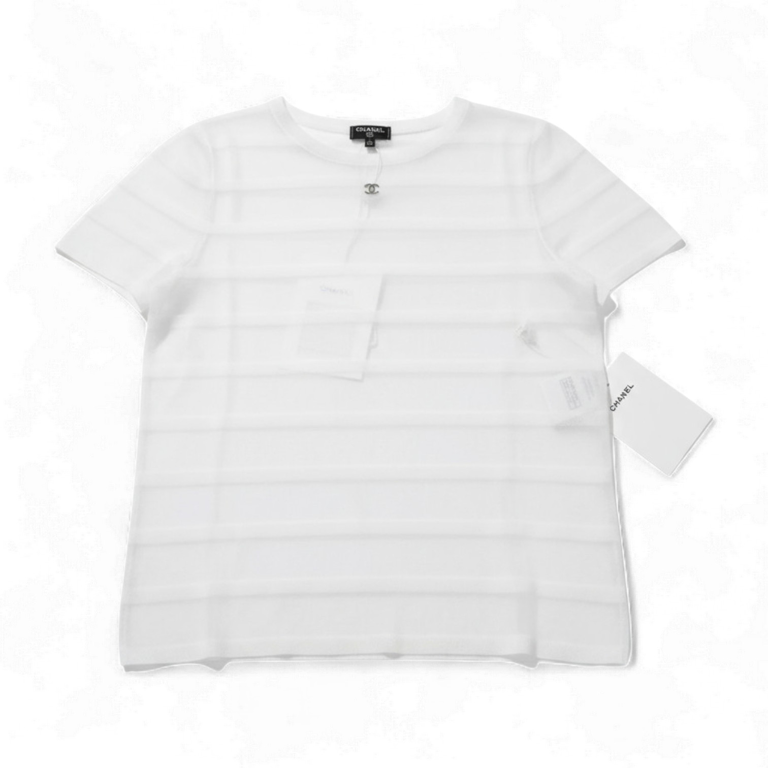 Представляем вашему вниманию белую футболку с короткими рукавами и горизонтальными полосками, вдохновленную наследием великого Дома Chanel. Эта модель – идеальный вариант для тех, кто ценит неподвластный времени стиль и хочет купить футболку CHANEL, ставшую символом элегантности. Дизайн футболки отсылает к морской эстетике, которую Коко Шанель популяризировала в 1910-х годах, совершив революцию в женской моде, освободив ее от корсетов. Белая футболка женская с полосками выполнена из качественного хлопка, что гарантирует комфорт и долговечность. Модель отличается узнаваемым дизайном и универсальностью, что делает ее must-have для создания базового гардероба.