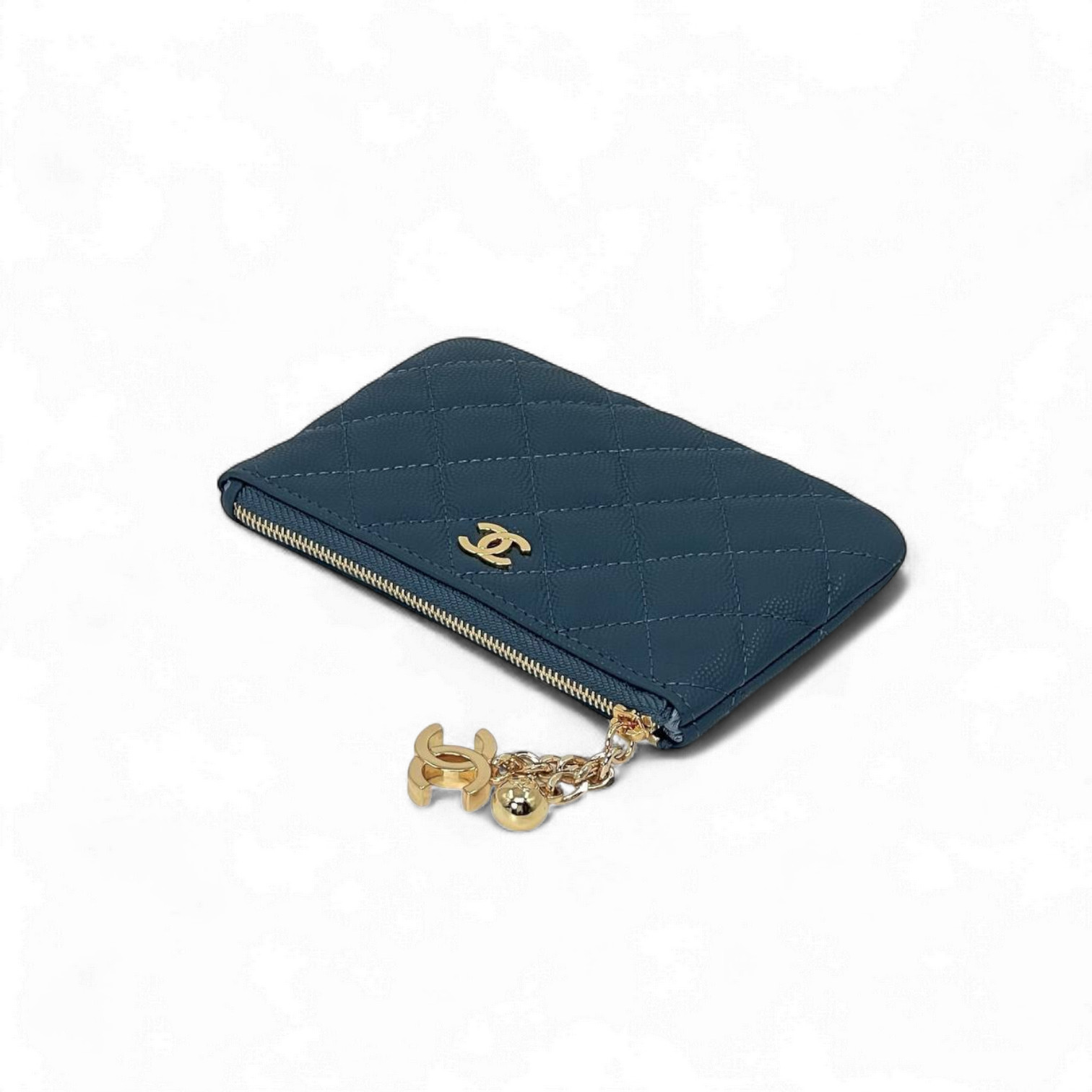 Картхолдер Chanel выполнен в формате, идеально подходящем для современного ритма жизни. Его компактный размер 14 см позволяет удобно хранить банковские и визитные карты, а также наличные деньги. Надежная золотистая застежка-молния обеспечивает полную сохранность содержимого. Особый шарм аксессуару придает изящный золотистый брелок-подвеска, прикрепленный к молнии, который при каждом движении мягко поблескивает, подчеркивая ваш статус и внимание к деталям. Этот кожаный кошелек станет универсальным спутником, идеально дополняя как повседневный, так и вечерний look. Он легко поместится в небольшую сумку или даже в карман, оставаясь стильным и функциональным аксессуаром.